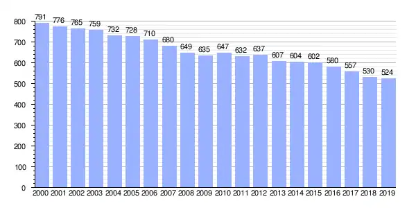 Gráfica de evolución demográfica de La Barquera entre 2000 y 2019 |
