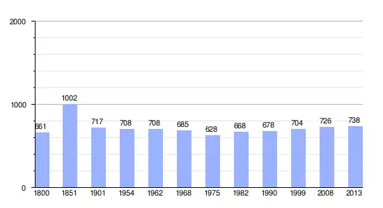 Gráfica de evolución demográfica de La Benâte entre 1800 y 2013 |