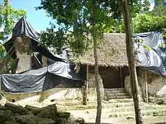 Se han hecho excavaciones en la acrópolis que han revelado la presencia de al menos dos plataformas sobrepuestas, construidas con bloques de buena calidad y aun de piso de estuco también de buena calidad.[20] Parece que las plataformas fueron cubiertas en fecha posterior a su construcción. Las dos plataformas fueron construidas en el clásico tardío y aparentemente fueron cubiertas en el clásico terminal.[20]