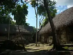 De la plaza sale un sacbé de 30 metros de ancho que dirigiéndose al sur pasa al oeste de la acrópolis y paralelo a ella.[3] Este camino continúa por aproximadamente 300 m hasta el Grupo Sur.[8] El área al oeste del sacbé presenta numerosos montículos y plataformas de menor tamaño, creyéndose que se trató de un área residencial.[3] Esta zona residencial incluye tres plazas grandes de las que la más al norte está separada de la Gran Plaza (del norte) por una fila de estructuras.[18]