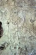 La acrópolis también se distingue por un gran número de grafiti inscritos en el estuco de las paredes interiores, muchos de los cuales muestran un buen nivel artístico. Estos grafiti fueron hechos, se cree, en la última fase de ocupación de la acrópolis durante el posclásico temprano e incluyen figuras humanas, algunas tocando instrumentos musicales, y de animales. Los animales mostrados en estos grafiti son venados, una tortuga y una rana.[21]
