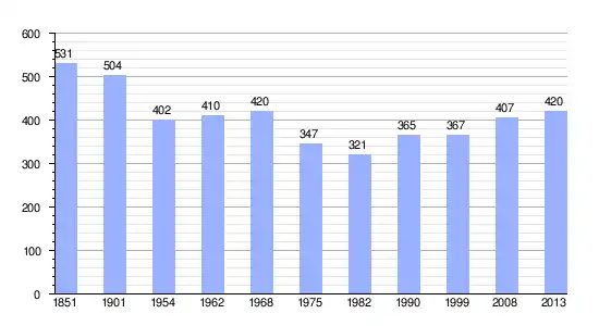 Gráfica de evolución demográfica de La Boissière-sur-Èvre entre 1851 y 2013 |