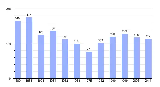 Gráfica de evolución demográfica de La Brévière entre 1800 y 2014 |