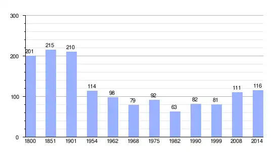Gráfica de evolución demográfica de La Celle-sous-Montmirail entre 1800 y 2014 |