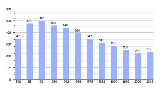 Los datos demográficos contemplados en este gráfico de la comuna de La Chapelle-Gaudin[4] se han cogido de 1800 a 1999 de la página francesa EHESS/Cassini, y los demás datos de la página del INSEE.[5]