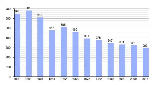 Los datos demográficos contemplados en este gráfico de la comuna de La Chapelle-Gaugain[4] se han cogido de 1800 a 1999 de la página francesa EHESS/Cassini, y los demás datos de la página del INSEE.[5]