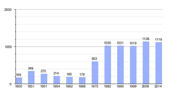 Los datos demográficos contemplados en este gráfico de la comuna de La Chapelle-Réanville[4] se han cogido de 1800 a 1999 de la página francesa EHESS/Cassini, y los demás datos de la página del INSEE.[5]