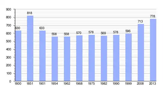 Los datos demográficos contemplados en este gráfico de la comuna de La Chapelle-Rousselin[4] se han cogido de 1800 a 1999 de la página francesa EHESS/Cassini, y los demás datos de la página del INSEE.[5]