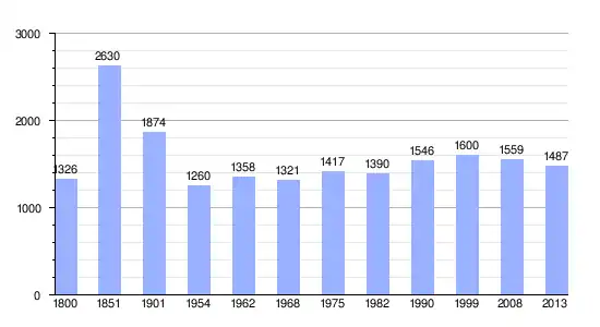 Gráfica de evolución demográfica de La Chapelle-d'Andaine entre 1800 y 2013 |