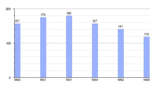 Los datos demográficos contemplados en este gráfico de la comuna de La Chapelle-du-Fest[4] se han cogido de 1800 a 1968 de la página francesa EHESS/Cassini.