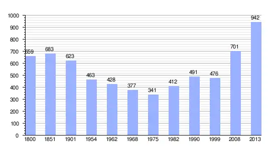 Gráfica de evolución demográfica de La Chapelle-du-Lou-du-Lac entre 1800 y 2013 |
