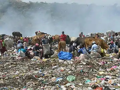 En el vertedero confluyen a un mismo tiempo los 1500 churequeros, los camiones de recogida de basuras, la maquinaria de nivelación y los empleados de la Alcaldía, más unos 60 carros tirados por uno o dos caballos que sirven para el transporte de materiales a los centros de acopio y con doscientas vacas cebú que “pastan” allí diariamente. Todo ello unido al humo permanente que surge de la basura y a los centenares de zopilotes carroñeros que acuden a alimentarse sin mayores dificultades.