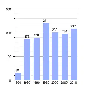 Gráfica de evolución demográfica de La Ciénega entre 1960 y 2010 |