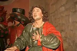 De una calidad notablemente superior a las tallas de Oliveros y Tudanca, el sayón, conocido como «El Chatarrilla»,[5] representa a un hombre de mediana edad con rasgos angulosos y rostro muy expresivo. Con la mano izquierda sostiene una lanza mientras que la derecha está alzada. Viste sayo en color burdeos, mangas color calabaza con acuchillado a la altura del codo (a través del cual se aprecia tela en color verde), calzones oscuros con acuchillado en el muslo dejando ver tela naranja, botas oscuras y gorro del mismo tono que las mangas.