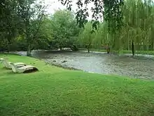 Entre las especies vegetales implantadas sobresalen las distintas variedades de coníferas, el roble (Quercus rubra), el olmo (Olmus minor) y el plátano (Platanus sp.).