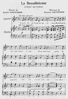 La Dessalinienne (Ladesalinyèn en criollo haitiano), en español, La canción de Dessalines es el himno nacional de Haití. Fue compuesto en 1904, para conmemorar el centenario de la independencia. Los autores fueron dos haitianos, Justin Lhérisson (letra) y Nicolas Geffrard (música).