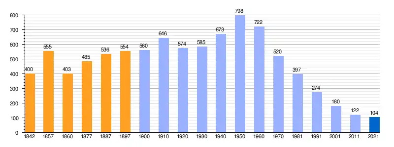 Población de derecho (1842-1897, excepto 1857 y 1860 que es población de hecho) según los censos de población del siglo XIX. Población de derecho (1900-1991) o población residente (2001-2011) según los censos de población del INE. Población según el padrón municipal de 2021 del INE. |