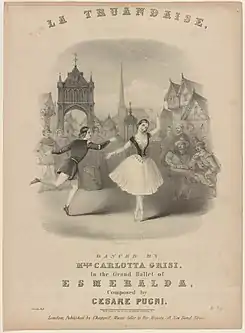 ![]() La truandaise, bailada por Mlle. Carlotta Grisi, en el gran ballet de Esmeralda, compuesto por Cesare Pugni. | ||