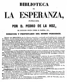 - La Hoz, Pedro de (4 de abril de 1860). «Primer artículo». La Esperanza: 1.