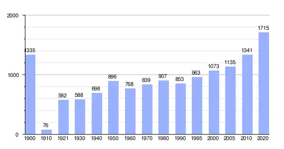 Gráfica de evolución demográfica de La Estancia entre 1900 y 2020 |