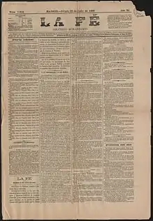 La Fé fue un diario carlista español editado entre 1875 y 1891 en Madrid durante la Restauración alfonsina. En un principio trató con respeto el proyecto de Unión Católica preconizado por Alejandro Pidal (aunque no se integraría en su partido), razón por la que se enemistó con su correligionario El Siglo Futuro y la corriente integrista defendida por este.