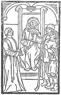 Maître Pathelin en el tribunal, escultura de la Edad Media.