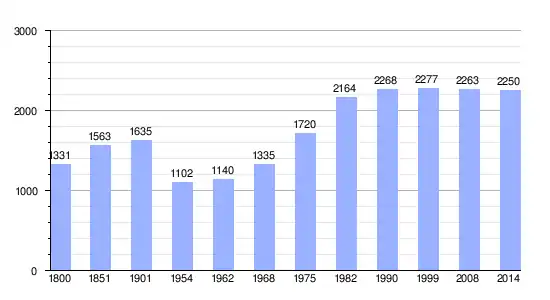 Gráfica de evolución demográfica de La Gacilly (comuna delegada) entre 1800 y 2014 |