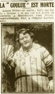 La Goulue (Clichy, 13 de julio de 1866 – París, 30 de enero de 1929), nacida como Louise Weber, fue una bailarina del cancán parisino, inmortalizada por Henri de Toulouse-Lautrec, apodada "La goulue" ("la golosa"), y conocida en la Belle Époque como "la reina de Montmartre".