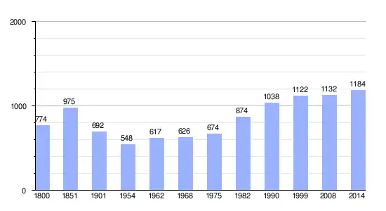 Gráfica de evolución demográfica de La Graverie entre 1800 y 2014 |