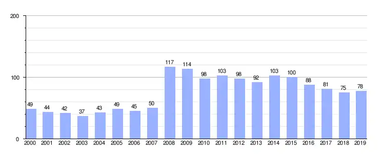 Población (2000-2019) según el nomenclátor de unidades poblacionales del INE. [4] |