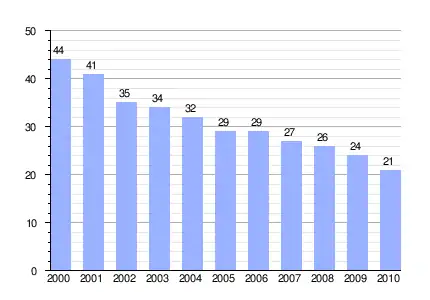 Gráfica de evolución demográfica de La Hinojosa (Soria) entre 2000 y 2010 |