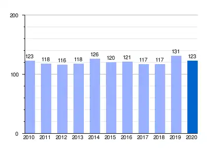 Gráfica de evolución demográfica de La Huertezuela entre 2010 y 2020 |
