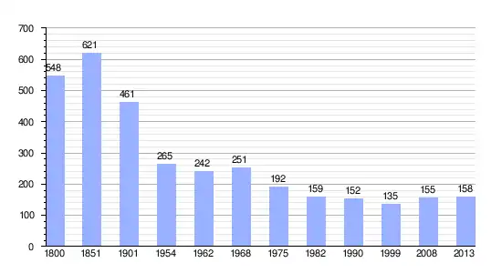 Gráfica de evolución demográfica de La Jemaye-Ponteyraud entre 1800 y 2013 |