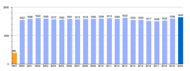 Población según el Diccionario geográfico-estadístico-histórico de España y sus posesiones de Ultramar.[6] Población de derecho (2000-2020) según el padrón municipal del INE Población según el padrón municipal de 2020 del INE. |