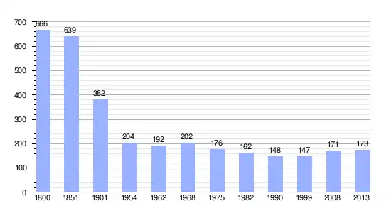 Los datos demográficos contemplados en este gráfico de la comuna de La Lande-sur-Eure[4] se han cogido de 1800 a 1999 de la página francesa EHESS/Cassini, y los demás datos de la página del INSEE.[5]