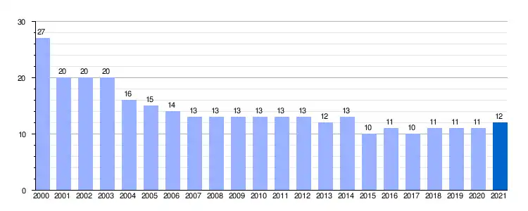 Gráfica de evolución demográfica de La Lastra entre 2000 y 2021 |