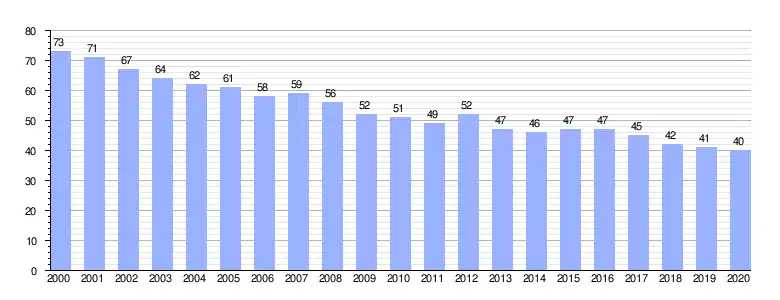 Gráfica de evolución demográfica de La Magdalena[2] entre 2000 y 2020 |