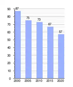 Gráfica de evolución demográfica de La Majúa entre 2000 y 2020 |