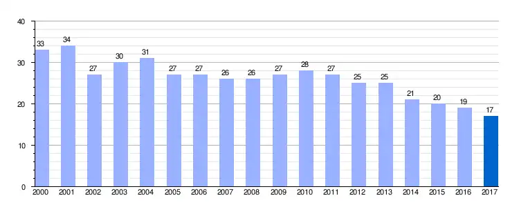 Gráfica de evolución demográfica de La Mata de Monteagudo entre 2000 y 2017 |