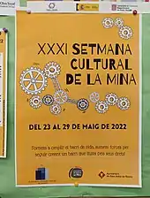 La Semana Cultural del barrio de La Mina es un espacio anual de intercambio comunitario liderado por la 'Plataforma de Entidades de La Mina', en el que las entidades y personas vecinas organizan actividades diversas (muestras, exposiciones, conciertos, presentaciones, espectáculos, carreras, talleres, charlas, etc.). En 2016 se celebró la edición número 25.[9]