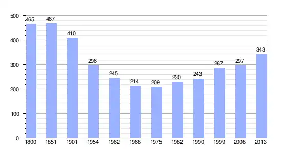 Los datos demográficos contemplados en este gráfico de la comuna de La Mouille[4] se han cogido de 1800 a 1999 de la página francesa EHESS/Cassini, y los demás datos de la página del INSEE.[5]