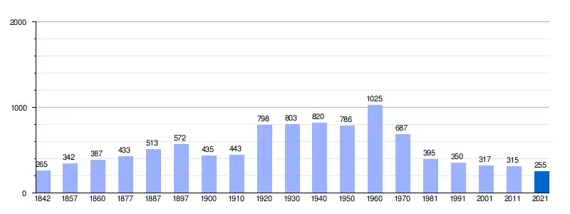 Población de derecho (1842-1991, excepto 1857 y 1860 que es población de hecho) o población residente (2001-2011) según los Censos de Población desde 1842. Población según el padrón municipal de 2021 del INE. |