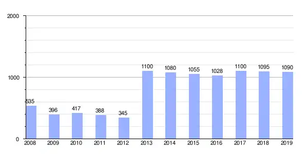 Gráfica de evolución de Deuda viva del Ayuntamiento de La Nava entre 2008 y 2019 |