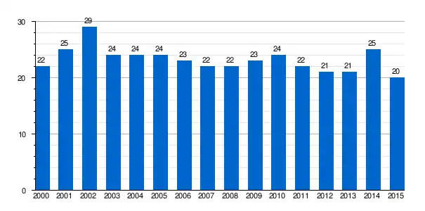 Gráfica de evolución demográfica de La Omañuela entre 2000 y 2015 |