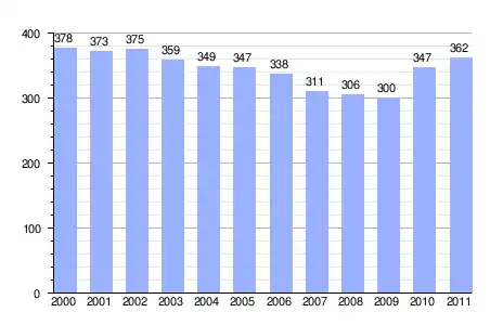 Población (2000-2011) según el nomenclátor de unidades poblacionales del INE.[5] |