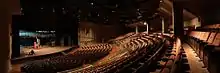 El patio de butacas, en un solo nivel y con forma de anfiteatro, tiene capacidad para 1496 personas. Pero uno de los rasgos más característicos del edificio es la boca de escenario: una de las más anchas del mundo. El proscenio tiene 30 metros de ancho y 7 de alto.