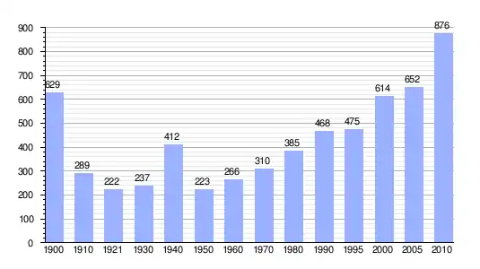 Población de los censos y conteos del Instituto Nacional de Estadística y Geografía (INEGI) de 1900 a 2010.[6] |
