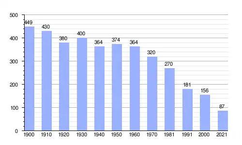Gráfica de evolución demográfica de La Peña entre 1900 y 2021 |