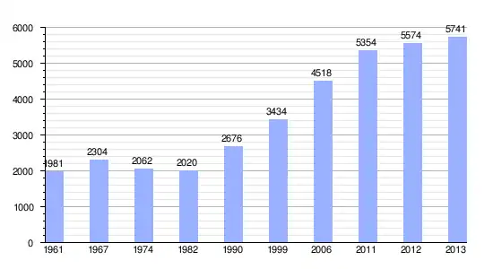 Gráfica de evolución demográfica de La Plaine-des-Palmistes entre 1961 y 2013 |