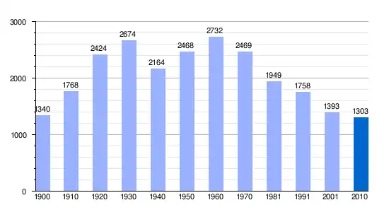 A 1 de enero de 2010 la población del municipio ascendía a 1303 habitantes, 648 hombres y 655 mujeres.[1]
